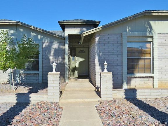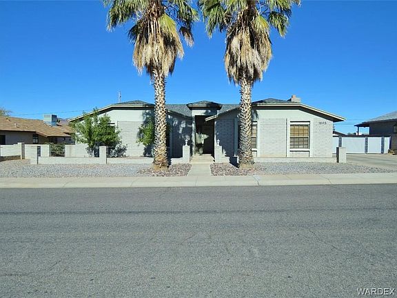 Big House ~ Nice Neighborhood ~ RV Parking. This 2,330 square foot home is light & bright and sits on a 100 X 100 lot with plenty of space for parking. The large living-dining room area has big windows and doors that open out onto the rear covered patio. The family room has a fantastic wood burning brick fireplace and is open to the kitchen with granite counter tops, deep stainless sink, electric range, dishwasher and breakfast bar. The large master bedroom has two walk-in closets plus a third wall of closets, dual sinks and a custom tiled tub shower combo. Inside laundry room has upper and lower cabinets, gas or electric hookups and a door to the side yard. Home has lots of storage, vaulted ceilings, raised panel doors, lighted rocker light switches, magnetic door stops, a floor safe and heating & air unit is just two years old. The attached two car garage is 19.7 X 22.8 deep, has drop down stairs to the attic and opens onto a large concrete slab that's 50ft plus from the sidewalk to the 12 foot wide RV gate and runs 47ft behind the gate. In the rear yard there's a 15ft RV gate that comes in from the alley and there's more parking in front on the west side of the lot. This nice established neighborhood is very walkable, just three blocks to the golf course with flat ground and sidewalks. 1845 Gates Ave, Kingman AZ
