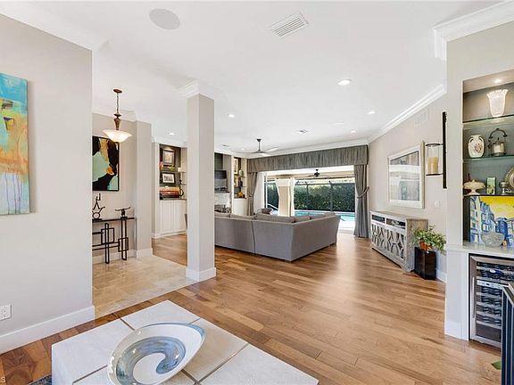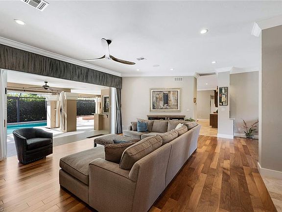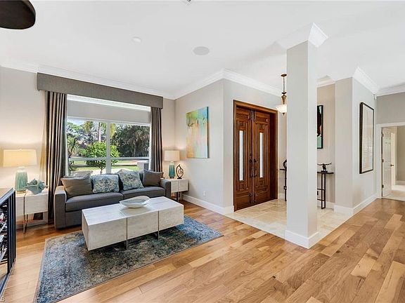 Nestled on an oversized lot, this stunning home seamlessly blends modern luxury with the tranquility of its natural surroundings. As you step inside, you'll be greeted by a warm and inviting atmosphere with lots of natural light and hardwood and travertine floors adding a touch of style and comfort. The master bath has been beautifully remodeled and each guest bedroom is accompanied by its own well-appointed bathroom. The kitchen is a true standout, with upgraded appliances, large island for gathering and meal preparation and opens up to the spacious lanai, creating the perfect space for entertaining or simply relaxing. The expansive covered lanai creates your own tropical oasis boasting an oversized pool and spa, built in grill and convenient pool bath, all capturing the essence of SWFL indoor/outdoor living with over 5500 total square feet. Additional highlights of this exceptional home include a cozy gas fireplace, 500-gallon propane tank for the pool, spa, grill and full house generator, and entire home hurricane protection. For additional piece of mind the seller is providing a 1-year home AHS Home Warranty at closing.