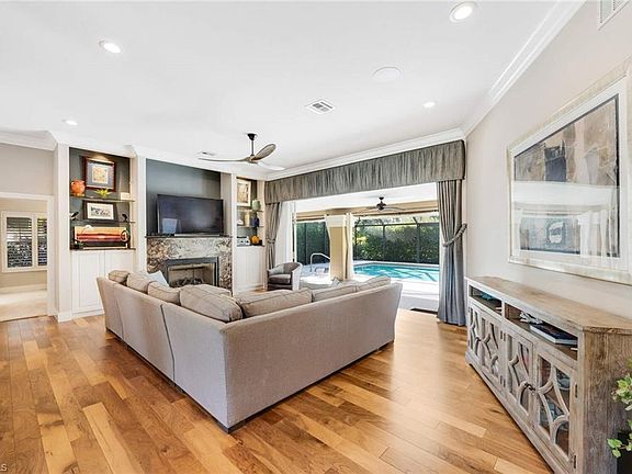 - Built-In Cabinets, Fireplace, Foyer, Laundry Tub, Pantry, Wired for Sound, Walk-In Closet(s), Window Coverings, Family Room, Guest Bath, Guest Room, Laundry in Residence, Screened Lanai/Porch