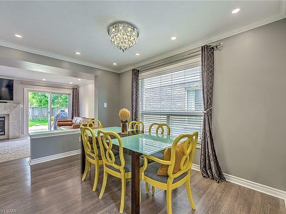 Welcome to this stunning two-story home nestled in the highly sought-after North London, Ontario neighborhood. This immaculate residence boasts modern charm and convenient amenities, making it the perfect place to call home. As you step inside, you'll be greeted by the inviting ambiance of laminate flooring and an open-concept main floor, ideal for entertaining guests or enjoying cozy family gatherings. The spacious living room features a fireplace with a granite mantle, creating a warm and inviting atmosphere for relaxing evenings. The kitchen showcases granite countertops, a center island, and a stylish tile backsplash. Dimmable pot lights illuminate the space, while crown molding adds a touch of elegance. Upgraded appliances, including a stove, dishwasher, and microwave from 2023, ensure both style and functionality. Venture upstairs to discover three bedrooms and two bathrooms, including an en-suite with a luxurious corner bathtub and a walk-in closet in the master bedroom, providing ample storage space. The finished basement offers additional living space, complete with a large family room and a convenient three-piece bathroom with a glass shower, perfect for accommodating guests or creating a versatile recreation area. Step outside to your private oasis, featuring an outdoor hot tub, a gazebo with lights, a sun deck, and a shed with lights, creating the perfect setting for outdoor relaxation and entertainment. This home is equipped with smart home lights and outlets, allowing for convenient control and energy efficiency. Plus, with a replaced roof in 2023, you can enjoy peace of mind knowing your investment is well-maintained. Don't miss your chance to own this exquisite home in one of North London's most desirable neighborhoods. Schedule your showing today and experience the epitome of modern living.