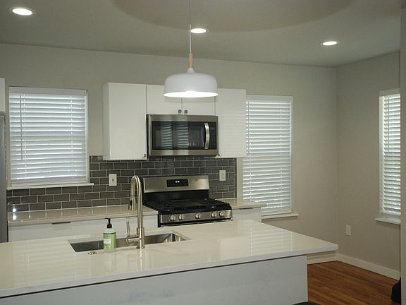 (Please read the entire description) This is a completely remodeled first floor duplex. Everything is newly done with a high end modern flair. The kitchen has contemporary soft close cabinets. All stainless steel appliances. Extra large refrigerator and gas range for the gourmet cook. Built in Microwave oven for convenience. 3CM quarts counter top with an extra large sink. A pair of new front loading washer and dryer next to the food pantry cabinet. Lots of beautiful new windows to let in the natural lights. Your friends can sit on the counter top height bar stool and chat with you while you entertain them from the kitchen. The flooring in the entire place is a newly refinshed original hardwood floor. The living room dining room and kitchen are open in a single large space. New and efficient central heat and air for your ultimate comfort. The two bedrooms have nice ceiling fans and recessed can lighting. Walk 2 blocks to get to the center of the PLAZA district for wonderful food and entertainment. There are 3 (or 6 if you park back to back) parking spaces in the rear driveway. Landlord pays for water and landscaping. You pay for electricity and natural gas. No pets allowed. Call or text me for a viewing. Owner pays for Water, Garbage, landscaping. Tenant pays for Electricity and Natural Gas.