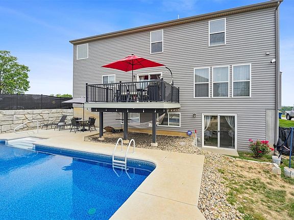 This home features a inground Heated Pool installed in 2022. You will be well equipped for all your outdoor entertainment. Enjoy your fenced yard. This 2 Story home also features 4 bedrooms, 2.5 Baths, 3 car garage, Main Floor Laundry. A bonus room on the lower level. On the main floor is a Formal Dining Room, Large Kitchen with Center Island, offers ample storage, 2 Pantries with a walk out deck for more outdoor entertaining, a Breakfast area, separate study and a powder room, spacious great room with a gas fireplace. Plenty of natural light. The second floor features an oversized Owner’s Suite with a roomy Walk-In Closet and a Deluxe Suite Bathroom with a Jetted Tub and separate Shower. A great loft area. Also offers 3 more bedrooms and a full bath, enjoy your Music throughout the home with a professional speaker system installed in the home. This home is nestled in a smaller subdivision close to all your entertainment, shopping, and dining needs located in the Festus School District