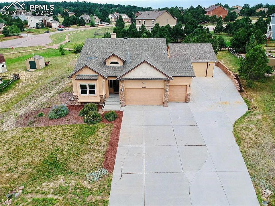 Explore the allure of this exceptional 2013 ranch-style home, set on a generous 1/2 acre lot with no HOA fees. A notable addition in 2019 is the expansive detached garage, designed to accommodate extra parking, recreational vehicles, boats, or equipment, and featuring an oversized garage door. An extended driveway with a culvert further enhances convenience and access. The interior showcases an open-concept design with 9' ceilings and a gourmet kitchen outfitted with stainless steel appliances and a walk-in pantry. The spacious dining area is ideal for entertaining and opens to a covered patio in the tranquil backyard, perfect for relaxation or barbecues. On the main level, the luxurious master suite includes a soaking tub, a separate shower, granite countertops, and a sizable walk-in closet. All bathrooms are elegantly appointed with granite countertops and extensive tile work. The finished basement, updated in 2019 to include two additional conforming bedrooms, now offers a total of six bedrooms in the home. This level also features a large family room, a full bath, and versatile space suitable for a game room or gym. The oversized 3-car garage, with a 22' deep third bay and 8' doors, complements the home's convenience and comfort. With easy access to highways and a peaceful retreat from urban life, this property provides a rare combination of modern amenities and spacious privacy.
