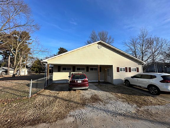 Perfect location for Marian Days Festivities (directly across from Vietnamese Monastery) and the famous Maple Leaf Car Show! Corner lot with good visibility, full chain link fenced backyard. Huge covered back patio and 2 car carport. Inside you will find 4 good sized bedrooms, spacious and high ceiling living room with original brick double sided fireplace, large dining area, bonus storage pantry room (mudroom) and huge laundry room! Original hardwoods throughout the home, extra nice natural lighting and a very cool, layed out kitchen with gas fireplace. Be near everything that Carthage has to offer on one of Carthage's famous streets . . . Grand Avenue!