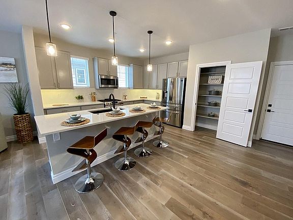 This premium modern end-unit townhome is in the booming Interquest area. Enter this well-maintained home from the beautiful entry way that leads to the living room, kitchen and dining area which makes for an inviting atmosphere. Open floor plan with wood vinyl flooring, high ceilings, and ample natural light. This home features a stunning and unique built-in electric fireplace with tile surround. Cook friendly kitchen features gorgeous quartz countertops, 42" soft close cabinets, SS Samsung appliances, pendant lighting, and large pantry. Versatile floorplan with 3 bedrooms on the upper level including a "Tech Center" desk/office nook and a spacious Master Suite with en-suite bath & spacious walk-in closet. Enjoy endless and on-demand hot water from the Rinnai tankless water heater, high efficiency furnace, wired for ethernet and much more. Get into this great community without waiting for your home to be built and make this home yours TODAY!