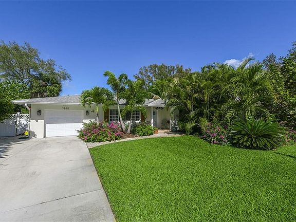 This engaging, WEST OF TRAIL home is minutes from downtown Sarasota. It maintains a wonderful vintage Florida feel while merging with updates and tip top care to preserve the value and lovely presentation of this home. The bright open floor plan features classic period oak flooring and crown molding. Follow into the cottage themed family room with bright airy windows and French doors that view the lush garden area reminiscent of Key West. Open concept kitchen is crisp & clean, has plenty of storage space with bar space seating. Plantation shutters throughout the home enhance the Vintage feel with a modern edge. Guest bath is entirely new with glass shower surround, quartz vanity tops and custom shelving and tile. Closets updates with new doors reflect an upscale look. Master has an ensuite bath and French doors overlooking the foliage. Indoor laundry has a new washer and dryer with ample storage space. Outdoor space features a green fence with Arica palms providing a secluded and tranquil atmosphere. The interior & exterior of the home is freshly painted. This house located in a quiet neighborhood is convenient to just about everything you desire.Bike to Siesta Beach and Lido is a short drive as is St. Armand's Circle, Longboat Key, SMH medical, 1st class schools, Southside Village, Cine Bistro, trendy Eateries & Art Venues. Property is UNFURNISHED.PETS OKAY DOGGIES AND CATS WELCOME!