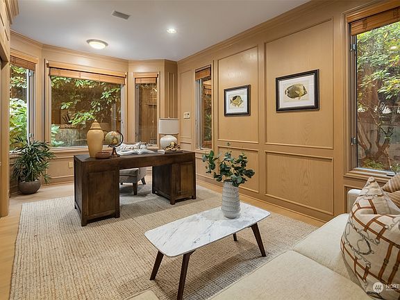 Immerse yourself in the elegance of this Mercer Island waterfront retreat. Grand living spaces, water views from almost every room, and a kitchen with top-of-the-line appliances. The main floor also features an office, gym, wine cellar, and sauna. Upstairs, the primary suite is a tranquil haven with a walk-in closet and luxurious bath. Three additional bedrooms each enjoy captivating water views. Revel outdoors with 85± ft of pristine shoreline, expansive deck, and dock with 2 boat lifts. Glass-walled deck showcases spectacular sunsets, complemented by a hot tub & fire pit. This exceptional residence is a testament to the Mercer Island lifestyle, harmoniously blending thoughtful design and the joy of lakeside living.