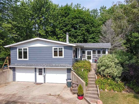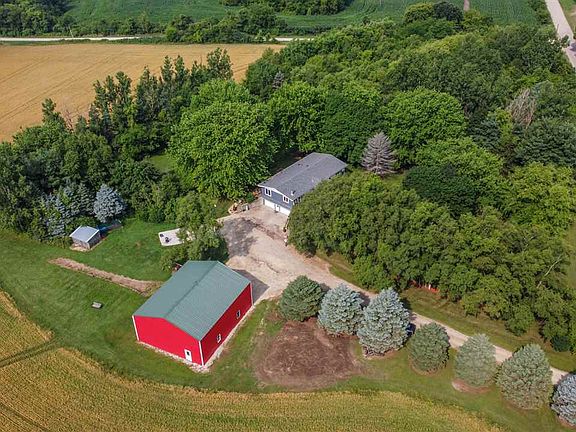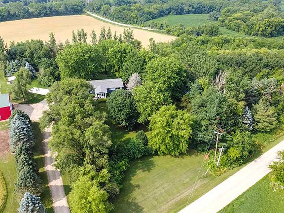Miles and miles of views! Top of the state at the highest point in Winnebago County! Country living at its finest. This 1974 ranch home sits on about 5 acres of wooded lands with a beautiful yard and a terrific 1900 sq ft pole barn with concrete floor and mezzanine for additional storage (new in 2010). Chicken coop too! Bring your horses, ATVs and any other things that make life worth living. The adjoining parcels of land (27 acres combined) are also available. The home has three bedrooms 2.5 baths and a 3 car garage. The dining, living room area has a nice platform mounted woodburner to keep things toasty in the cold times. The current owner uses dish network and says she can stream Netflix just fine. It's as fine a place at an affordable price as you could hope for. Did we mention the grape arbor?