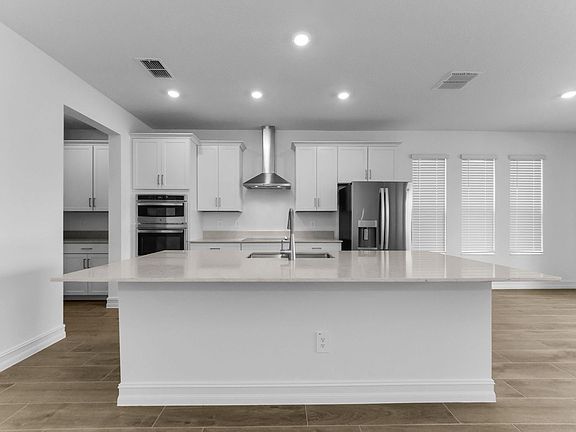 Large islandBeautiful finishing touchesButler pantryOpen floor planCeiling fansCheerful natural lightScreened in patio space