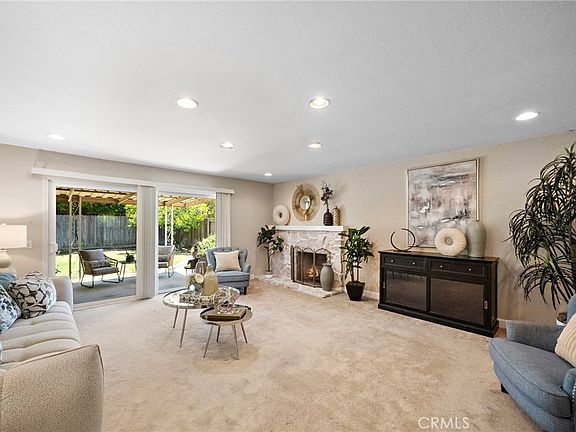 Welcome home to this lovely, impeccably maintained 4 bedroom, 2.5 bath single-level Meadow Home that offers 1,680 square feet of open-concept living space, filled with natural light and nestled in a highly desirable Fountain Valley neighborhood near award-winning schools, parks, shopping, and less than 4 miles to the beach—on the market for the first time in over 50 years. This beautifully upgraded home features central air conditioning, dual pane windows and sliders, custom blinds and window shades, recessed lighting, crown molding, raised panel interior doors, mirrored closet doors, an abundance of storage cabinets, and remodeled bathrooms and kitchen. Step through the custom front door with beveled glass into a welcoming foyer with Travertine-style tile flooring that flows into the banquet-size dining room that's open to the upgraded chef’s kitchen showcasing Corian countertops, gas cooktop with vent hood, double ovens, dishwasher, and extended custom Maple cabinetry with a long Corian buffet counter—ideal for entertaining. Off the kitchen is a convenient half bath, laundry room, and access to the two-car garage with lighted workbench and attic storage. The spacious living room boasts a stone fireplace with raised hearth and sliding doors that open to a serene backyard oasis with covered patio, lush lawn, colorful gardens, and mature fruit trees including a giant avocado shade tree producing abundant fruit - a true paradise for relaxing and entertaining while enjoying cool ocean breezes. The primary suite features a private bathroom with walk-in tile shower, while the three guest bedrooms—one with direct access to the yard—share a spacious hall bath with dual sinks and tub/shower combo with glass enclosure. This delightful home radiates warmth, comfort, and pride of ownership—ready to welcome its next loving family.