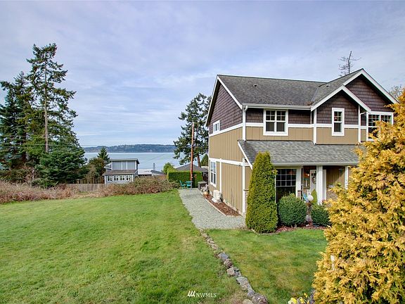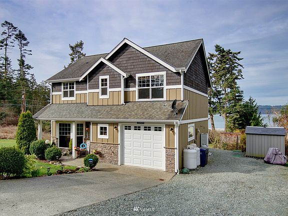 Meticulously maintained VIEW home at the end of a quiet road. This would make a lovely primary home or your private getaway near La Conner. Pride of ownership shows throughout this 3 bedroom 2 1/2 bath with oversized 1 car finished garage. Hardwood floors, new appliances, new water heater, furnace serviced/new heating element, AC and a pantry in the kitchen . Natural light and views of Skagit Bay fill the rooms. West side water view cedar deck with low maintenance aluminum railing is ready for your entertaining and a trail to the beach is across the road. Plenty of off street parking and room for RV or boat near the shed. Minutes to La Conner, Anacortes, Mount Vernon & Burlington for shops and services. This property is on leased land.