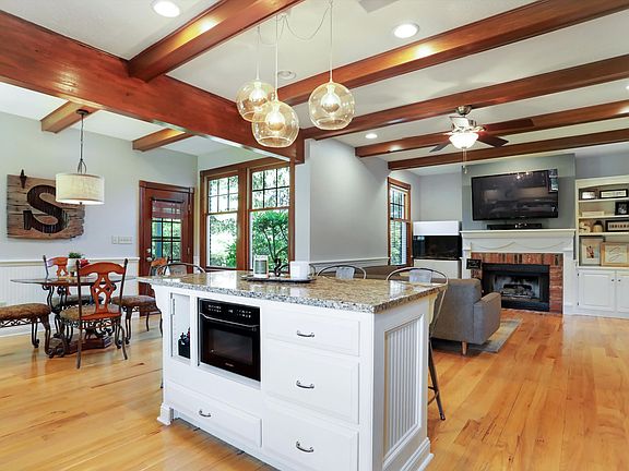 Where traditional charm meets today's modern living!! This front porch is what dreams are made of!! Entering this 4 bed, 4600 sq. ft. home you are met w/ a striking foyer, staircase & dining room which could double as a home office! The living room exudes warmth & sophistication with its floor to ceiling windows & wood columns. A sleek fireplace adds a cozy ambiance! Wooden beams connect the kitchen, breakfast room & hearth room seamlessly. The timeless kitchen has newer appliances, granite counter tops & a tile backsplash. A large center island provides seating for casual dining & a walk-in pantry brings ample storage space. The newly updated laundry room is the perfect blend between function & design w/ a raised washer & dryer, utility sink, board & batten walls, & updated tile w/ painted cabinetry. Don't forget to peep the connected storage closet! The primary suite is a sanctuary unto itself, boasting a spacious layout w/ tray ceilings, walk-in closet w/ 12' ceilings & 3 tiers for clothes hanging, & a spa-like ensuite bathroom complete w/ dual sinks and a sleek, glass-enclosed shower. Upstairs are two oversized bedrooms connected by a Jack & Jill bathroom & an unfinished attic space, ready to be turned into a 3rd bedroom! The basement is an entertainers dream waiting to host every gathering in the family room & bar area or have a movie night at home in the theatre room w/ its 120" screen & projector! A 4th bedroom, full bathroom & workout room rounds out the basement. Do not miss the extra large storage area/utility room w/ stair access up to the finished 3 car garage w/ Race Deck flooring, HVAC system, that is wired for a 40amp EV, has an outlet for an air compressor, & has 2 floor drains & a mop sink, both draining to the sump pit. Outside, a magical screened porch & a private patio provide an extension of the living space, offering opportunities for entertaining or simply basking in the private, fully fenced backyard!