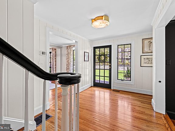 Set amidst a beautifully landscaped 1 acre lot in the heart of Ruxton, totally renovated and expanded, flooded with natural light from its many windows, bay windows and French doors. The cozy farmhouse blended with a cool current vibe, perfect for today's modern living. The welcoming Foyer with classic staircase leads to a stunning sunken Living Room with fireplace, large windows, French doors and custom illuminated built-ins. Also from the Foyer is the formal Dining Room with fireplace, French doors and custom built-in china cabinets. The modern updated Kitchen features stainless steel appliances, soapstone and marble counters and a sunny breakfast area. An adjoining Family Room awaits with a gas fireplace, bar and 3 walls of windows including French doors to the patio. Also adjacent the Kitchen is a cozy Den with a fireplace and Powder Room. The upper level with mostly vaulted spaces has 4 Bedrooms, 3/1 Baths and laundry. The sumptuous Primary Suite features double sliding barn doors opening to a luxe marble Bath with a relaxing soaking tub, matching vanities and glass-enclosed shower. An en-suite Bedroom and 2 additional Bedrooms with shared Bath complete this level. The heated saltwater pool and pool decking/patios was renovated in 2022 and is enclosed with a decorative black metal fence.