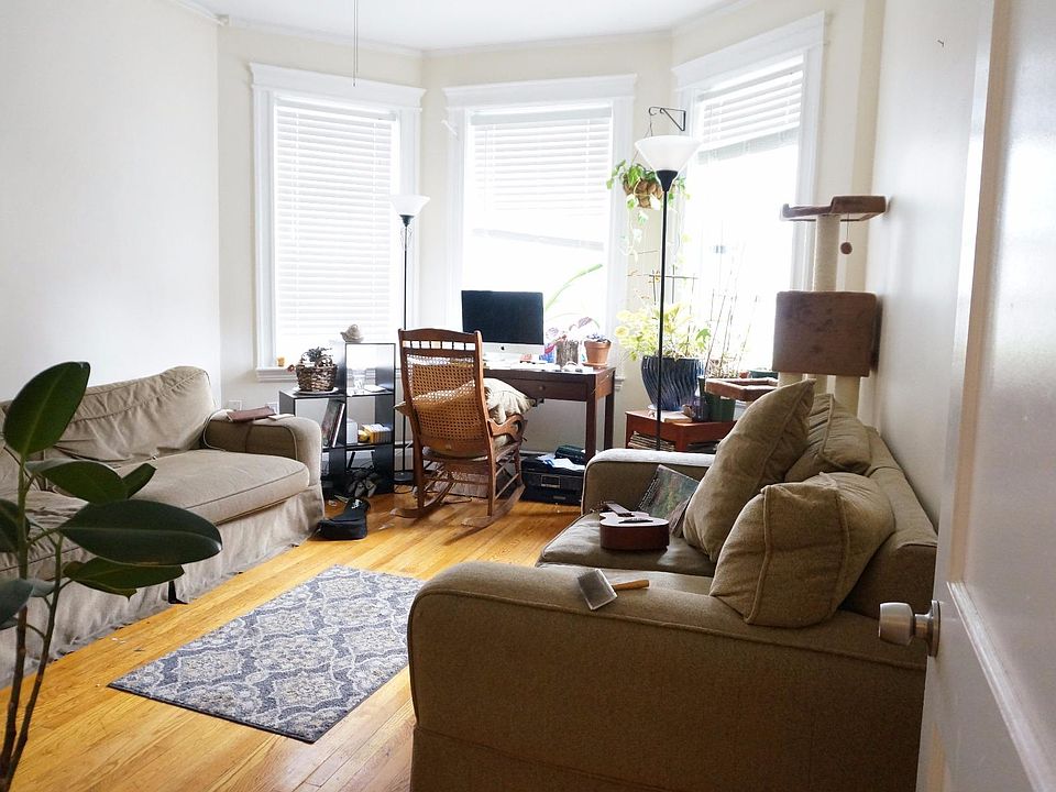 AVAILABLE AUGUST or JUNE - Cleveland Circle area for last unit . This is a one or two bedroom apartment that can be used as a two bedroom if needed. The living room shown in the picture has a standard doorway that can be turned into a bedroom. Heat and hot water are included in the rental price of the apartment. Parking is available for a fee out back. Walk to the B, C, or D line trains for the commuters dream. Laundry is in the complex around the corner. CATS OK!