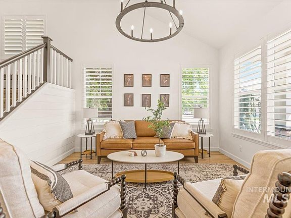Located in the beautiful Woodbridge neighborhood. this home has 5 bedrooms/3.5 baths, formal living & dining, family room, & upstairs loft, there is room for everyone! From the moment you step inside, you'll be captivated by the high-end finishes, & abundant natural light that fills every room. The kitchen is a chef's dream, equipped with state-of-the-art appliances, a large island, & plenty of storage space. The living areas are perfect for entertaining, w/ a cozy fireplace & beautiful hardwood floors. The master en suite has been recently updated & is a true retreat. Outside, the property continues to impress w/ a beautifully landscaped yard, a spacious patio for outdoor dining, & plenty of room for kids to play or for you to relax and enjoy the Idaho sunshine. The location is ideal, situated in a friendly neighborhood with easy access to schools, parks, & I-84. Roof/AC/furnace are all very new!