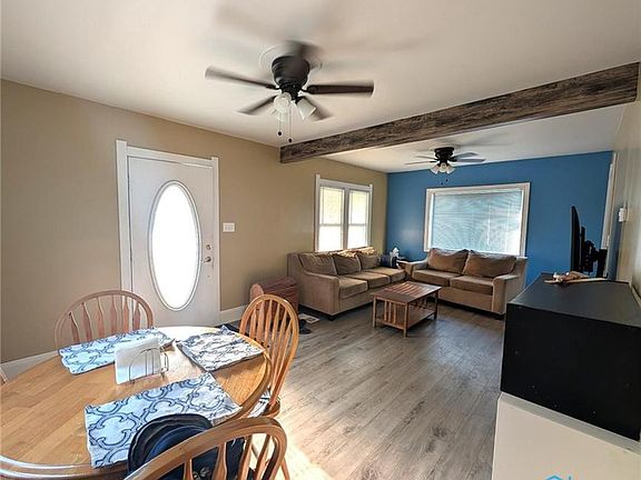 This inviting home combines charm with smart updates. The main level features an open living and dining area anchored by a rustic wood beam and dual ceiling fans, with plenty of light and easy-care laminate flooring. A bright kitchen with white cabinetry, ample counter space and matching appliances adjoins a cozy breakfast nook. A Den/Breezeway too! Oversized attached 3 gar garage with electricity for all your storage needs! Home features three bedrooms upstairs with original hardwood floors and two updated bathrooms (one on each floor) to make this home both comfortable and practical.