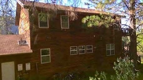 Large outside area & Fenced garden area. Harris Creek flows near gate & along 1 side of property. 2850 ft elevation. PETS ALLOWED - YES (restriction on aggressive breeds) 12 Miles from Oakhurst, or 15 miles from Mariposa. 5 Miles from Ahwahnee. In Mariposa school district (Woodland Elementary 8 miles away) - possible to apply for transfer to Wasuma (5 miles towards Oakhurst). 1/4 mile off the Highway. On large secluded 16 acre lot, which has 2 homes (one occupied by an elderly relative). [ Do Not Disturb tenant]. -- Please contact us for viewing or application/qualifying or any questions. MORE PHOTOS to COME. Fenced garden area. NOTES: 100% off-grid Solar. No electric bill. Some expected Generator (propane) costs for winter (during rain/snow) we can negotiate a low cap on costs. No Sewer or Water bill. The driveway is 1/4 mile of county-maintained gravel road; some dust/mud occurs. OF 5 Bedrooms -- Master has conected bathroom. Master & 3 more beds + 1 bath are upstairs. -- An inLaw or Guest suite on 1st floor with separate entrance, bath and covered patio. On large secluded lot, which has 2 homes (one occupied by an elderly relative). [ Do Not Disturb tenant]. -- Please contact us for viewing or application/qualifying or any questions. MORE PHOTOS to COME. NOTES: 100% off-grid Solar. No electric bill. Some expected Generator (propane) costs for winter (during rain/snow). No Sewer or Water bill. Trash service available. Woodstove in place.. Moderate climate with some snowfall. Seasonal stream and meadow views. 11 Miles from Oakhurst. 17 Miles to Mariposa. Fenced area for garden, or medium size pet. Pets allowed with deposit. The driveway is 1/4 mile of county-maintained gravel road; some dust/mud occurs. OF 5 Bedrooms -- Master has connected bathroom. Master & 3 more beds + 1 additional bath are upstairs. -- Guest bathroom on 1st floor. -- An inLaw or private suite on 1st floor has separate entrance, bath and covered patio.