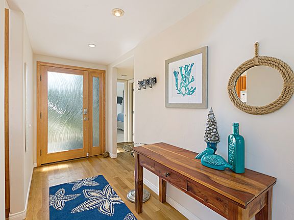 FURNISHED SHORT TERM RENTAL. Available end of February until May 15, 2025. Ocean view three bedroom, three bathroom townhome. Additional loft area within third bedroom. Third bedroom also has desk area. King bed in every bedroom and loft area has two twin beds. There are four televisions located in the following rooms: Living room, master bedroom, and both guest bedrooms. This property has an ocean view deck with outdoor seating. Front patio is enclosed with BBQ. Washer and dryer in the home. Enclosed garage. Beach towels, chairs, umbrella, and boogie boards are provided. Enjoy the amenities of Seabluffe: two pools, one heated year round with a hot tub, four tennis courts, four pickleball courts, half basketball court, child play area, and private stairs to the beach. The maximum occupancy is 7. WiFi. No Pets. AC. FURNISHED SHORT TERM RENTAL. Available end of February until May 15, 2025. Monthly rent is $6580. Refundable security deposit of $3000. One time fees of $620.