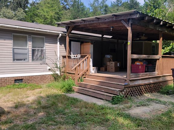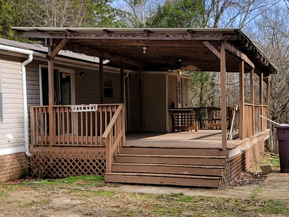 Vinyl Plank Flooring in the main areas. Over 2000 sq ft home with high ceilings throughout features a chef size kitchen with plenty of cabinets, kitchen island, desk area, spacious Family room with wood burning fireplace has french doors that open onto the super-size deck perfect for entertaining. Primary bedroom has walk in closet and a salon bath with garden tub, separate shower, double vanities. New Roof installed in 2023! A storm shelter, she shed and large detached garage, 2 more outbuildings, small barn and many separate fenced in areas for all pets! All pets welcome! Security gates are at the entrance to the property. Gate has been disabled for showings but motorized gate will be installed with new contract. Center Hill Schools!