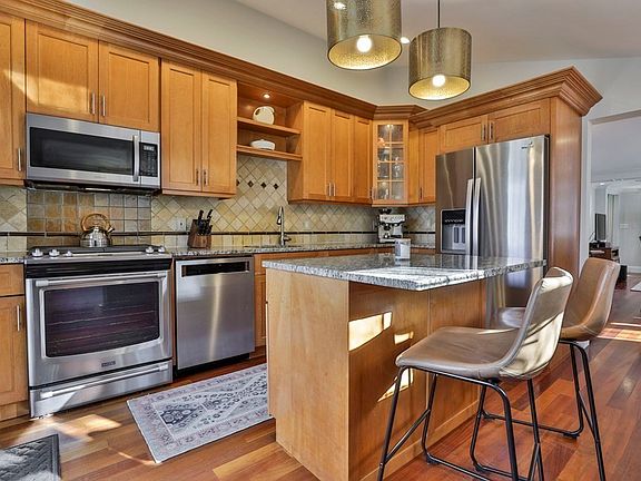 - Features: Cathedral Ceiling(s), Flooring - Hardwood, Balcony / Deck, Countertops - Stone/Granite/Solid, Kitchen Island, Cabinets - Upgraded, Recessed Lighting, Stainless Steel Appliances