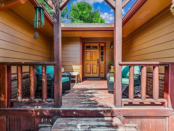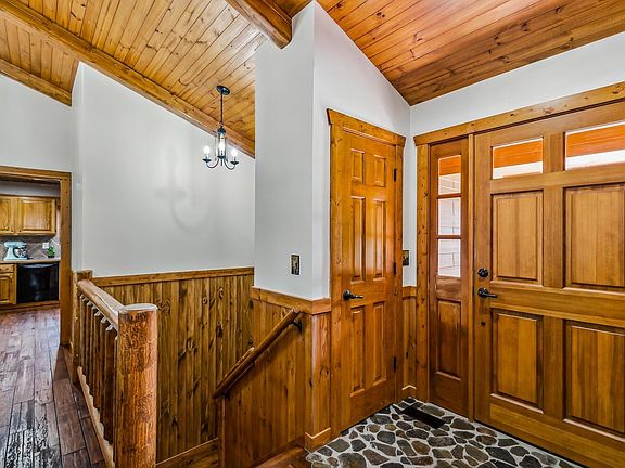 Showings start Friday, June 21st. Welcome to your stunningly charming, rustic, move-in ready home! Ideally situated in west Wichita, this 4 bedroom 3 bath beauty is rare indeed and exudes pride of ownership. Lovingly upgraded over the years with hundreds of hours of labor from a gifted carpenter, this one of a kind home features beautiful custom wood accents throughout and has been meticulously maintained. Upon arrival, you will be greeted by mature trees, lush green grass, a custom front porch with seating area, and a unique river stone flooring landing at the entry. Inside you will discover an inviting living space with REAL wood floors, rustic wood ceiling beams, and elegant neutral white paint, giving the home a luxurious resort-like feel, reminiscent of Big Cedar Lodge. The living room is simply amazing with the focal point of the fireplace which includes a custom fireplace mantel and floor to ceiling river rock accent. The wood-burning fireplace is equipped with gas assist and is perfect for cozy evenings. Imagine fall evenings nestled next to the warmth of the fireplace. Imagine warming heart and soul with loved ones over the holidays! The kitchen is delightful as well, featuring rich wooden cabinets, ample countertop space, and a tiled backsplash. Enjoy cooking with quality appliances and plenty of natural light streaming in through the windows. The rustic master bedroom is large and spacious with soaring vaulted ceilings. The en-suite bathroom continues the theme with a glass-enclosed shower, a live-edge wooden countertop, and contemporary fixtures. The value goes on in the basement which features an additional bedroom, bathroom, extra storage space, and inviting family room, with custom entertainment built in, enveloped in more rustic charm. Outdoors, you will find a serene oasis with a beautifully landscaped yard, garden area, and mature shade trees. The circular stone seating area is complete with a fire pit and surrounded by lush greenery, making it an ideal spot for entertaining or unwinding. This home offers a perfect blend of rustic charm and modern amenities, ready for you to move in and make it your own. NEW ROOF in 2019 for low insurance! House has been fully inspected for your peace of mind, report is online. Don't miss the opportunity to enjoy your very own luxurious resort escape!