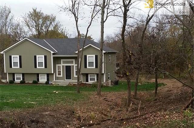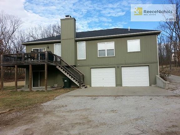 Beautiful treed acreage in a very private setting w/a lovely 16x12 deck to enjoy to entertain friends, 3 full acres of land to enjoy privacy and yet close to Lees Summit in fact 17 miles total. Step into a tiled entry go upstairs to a lovely GR then into a lrg kitchen w/lots of cabinets and a large eating area. The utility room has beautiful dark wood floors like the kitchen and conveniently located next to the kitchen. From the entry you go down to a lovely finished family rm and half bath that could be a 4th BR