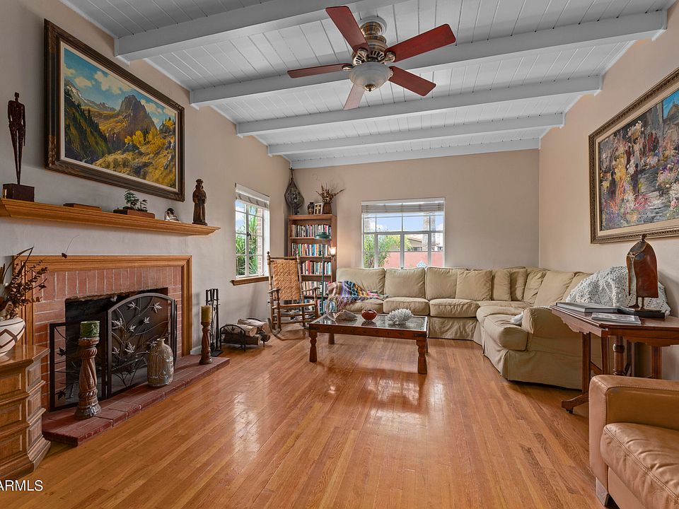 Start your new year off right: In Encanto! Featuring gorgeous homes on oversized, manicured lots, the air seems cleaner, the streets seem wider, and the colors seem crisper...because they are! Framed by palm trees along most of the winding streets, cars go slower to take in the neighbors ''Hello's!'' and to take in the unique characteristics of each home (no two are alike!). The colors are more vivid thanks to the abundance of beautifully manicured, established landscaping. And the friendliness of the neighbors--many of whom have been here for decades--exudes at every turn. With the Encanto Golf Course a short walk away and two large Encanto Parks, it really does feel dreamy here. Featuring 4 large bedrooms, 3 full baths, an amazing floorplan, 2 incredible yards PLUS a pool, this home has it all! Wood floors throughout, this home also features a bonus basement room, an updated Chef's Kitchen and multiple patios. This is a home that lives large! Speaking of which: The Living Room? Is HUGE and filled with light courtesy of the dual paned, wood-trimmed windows and high ceilings; while the dining room is large enough to host weekend and holiday gatherings while also intimate enough to enjoy a nice night at home. The Master bath features an oversized, double headed shower, large soaking tub, double vanities, and the closet? This is one historic home that has closets that are (almost!) too big (you'll have to see it to believe it!).