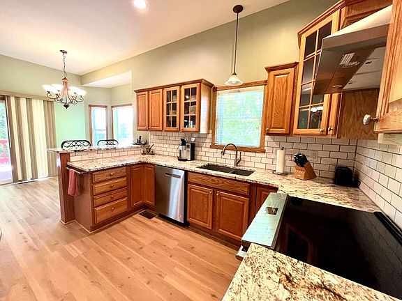 Spectacular Ranch Home is so Warm & Inviting with Upgrades Galore!*Brick Front with Stone Accents has Lots of Curb Appeal*Large Living Room features 10' Ceilings & Lots of Natural Light Pouring in from the Replacement Windows*Kitchen was Just Remodeled and Wow Your Going to Appreciate the Breakfast Bar & the Beautiful Granite Counter Tops, Subway Tile, Luxury Plank Vinyl Floors & Stainless Appliances Stay!*Good Size Eating Space with Bay Window & Sliding Glass Doors Leading you out to a Covered Deck which is a Great Entertainment Space*Master Bedroom has Vaulted Ceilings, Large Walk-In Closet and a Master Bathroom that is a Solid "10" with Beautiful Cabinets allowing Tons of Storage, Granite Counter Tops & Walk-In Shower with Bench Seating*Main Floor Laundry with a Pantry*Full View-Out Basement with a Huge Family Room with a Gas Fireplace & the Bar has Brand New Granite Counter Tops, Subway Tile & Luxury Plank Vinyl*What a Fantastic Gathering Place!*This 5 Bedroom 3 Bath Home is the One You Have Been Waiting For! No Special Taxes & No Popcorn Ceilings Here*Lush Yard with Sprinkler System*Hot Water Heater is 50 Gallon (1 YR.) *Heat & Air are 1 YR. Driveway is approximately 2 Years Old* Neighborhood Sidewalks, Playground & Pool*Homes Like This Really Shine!