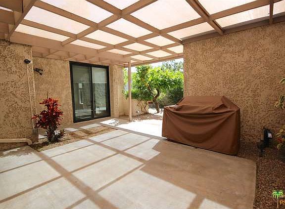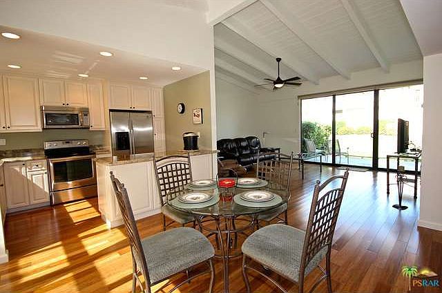 Tastefully and meticulously renovated 2 bedroom condo in Central Palm Springs. Nothing was overlooked in this top to bottom renovation.. carbonized bamboo floors, solid wood kitchen cabinets with soft close hinges topped by granite countertops. Both bathrooms have been fully renovated with step in showers and clear glass surrounds. Solid raised panel doors, recessed lighting, ceiling fans, inside laundry, designer paint, dual pane windows...the list goes on. Up front, one of the largest private patios in the entire complex, while out back the living room and master bedroom open up to their own patios. Located in desirable Sunrise Oasis, with three pools, tennis courts, and lots of open park-like space on Fee Simple (you own it!) land. There's just too much to list, you really need to see this one for yourself!