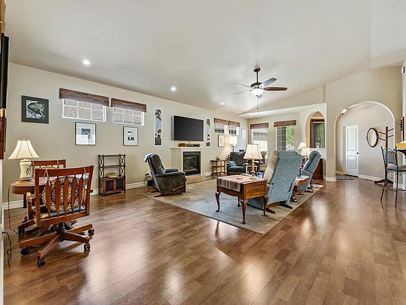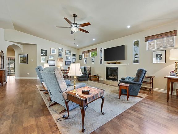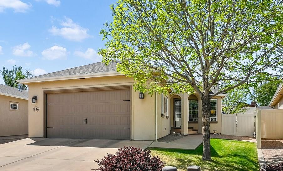 Welcome to your new lock & leave in the heart of Tuscany Village subdivision, nestled in scenic Northern Grand Junction, CO. Convenient & comfortable, this meticulously crafted home is strategically positioned near town amenities, including shopping, parks, medical facilities and the airport ensuring a lifestyle of ease & accessibility. Step through the doorway into a sprawling living space, with vaulted ceilings & an open concept that amplifies the sense of openness. Natural light floods the interior, accentuating the unique architectural details, from elegant arches to bull-nosed corners & gracefully curved walls. Gather around the cozy gas fireplace, the focal point of the room, offering warmth and ambiance for a relaxing evening. The kitchen contains plenty of modern amenities including stainless steel appliances, granite countertops, a breakfast bar perfect for casual dining, a large walk-in pantry, tile backsplash, owned water softener, & a reverse osmosis water filter. Hand-blown glass pendant lighting fixtures add a touch of sophistication, while the adjacent dining area, framed by bay windows, creates a bright and inviting atmosphere for enjoying meals. The convenient laundry room, complete with cabinets and shelving, leads to the attached two-car garage, complete with built-in shelving & a workbench, ideal for DIY projects or hobbies. Two additional bedrooms provide ample space, each featuring generous double door closets & beautiful windows accenting the rooms perfectly. Retreat to the primary suite for relaxation with direct access to the back patio & a spacious walk-in closet offering plenty of storage. Pamper yourself in the en-suite bathroom, featuring a large walk-in shower, tub, dual sinks set upon aesthetic countertops & more custom hand blown glass fixtures. Outside, discover a haven for outdoor living, with a covered patio equipped with roll-down screening & an outdoor ceiling fan, creating an idyllic “exterior room” for al fresco dining or simply unwinding amidst the tranquil surroundings. The fully landscaped yard has mature trees, xeriscaping, three sheds & a versatile cornhole, horseshoes, or bocce court area for recreational activities. This home also offers the convenience of an owned radon mitigation system and hassle-free maintenance courtesy of the HOA, which handles irrigation, yard maintenance, & optional snow removal, ensuring a worry-free lifestyle. Experience the epitome of modern living in this one-of-a-kind property.