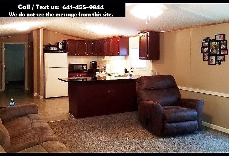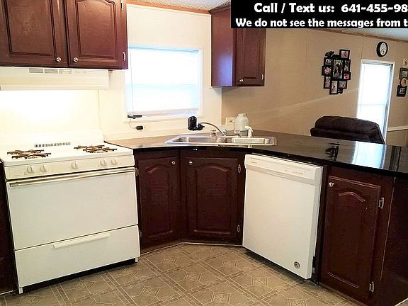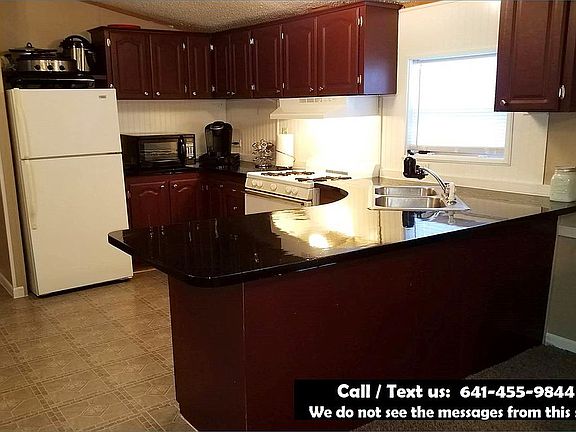 $695 per month RENT * 3-Bedroom/2 Bathroom mobile home, W/D Hookups, Incl: in Rent: Water, Mowing, Trash, & Lot Rent, Central Air/Heat, Stove, Refrigerator, & Dishwasher Note: This is not lot 17 but Zillow would not let me change it. * 3-Bedroom mobile home rental :-) $695/mo. * 2 Bathrooms * Washer & Dryer Hookups * Included in Rent: Water, Mowing, Trash, & Lot Rent * Central Air & Heat * Vinyl siding & Deck * Stove, Refrigerator, & Dishwasher * Included in rent is: water, trash, mowing, & Lot rent. * Private Parking spot right next to rental & extra off-street parking very near * Next to Park, basketball court, & covered picnic area. Well-maintained. * Most adult dogs are allowed, with restrictions. BIG or small well-trained dogs. With multiple pets the pet fee is LESS per pet. * NO NEW PETS AFTER MOVING IN * Pets must be PRE-APPROVED. The reason for NO NEW pets after moving in is... to know if they're house-trained you must know their history of behavior. * Get your CURRENT pets pre-approved. $300 fine if UN-approved pets are snuck in. * Very responsible landlords & the 18 lot mobile home park is quiet * Rental Deposit is = to 1 month's rent. We are not signed up for the Section 8 program * Smoking MUST be done OUTSIDE. $300 Fine EACH time evidence of smoking inside is found. If you want to smoke inside then do not rent from us. * Here is the process we go through for each potential tenant. Applications are turned in for: 1) Full Criminal Background check on every single person staying at the residence 2) Verifiable Net income at least 2.5 times the monthly rent plus $348 income per addt'l person/mo (Federal minimum/p.p.l.). The rent amount does NOT change. To be able to afford rent you must make an minimum income, as described. 3) Have at least 6 mo. at your current job or longevity at previous jobs 4) Good references (former landlord) 5) Deposits + 1st month's rent must be paid before the tenant moves in. Call/text: 641-455-9844
