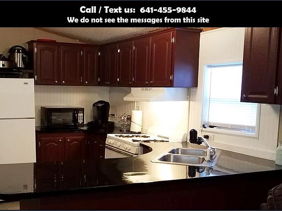 * 3 Bedroom, 2 Full Bathrooms * RENTAL: $625/mo. Ottumwa, Iowa :-) Dishwasher, Stove, Fridge, Mowing, Snow Removal, & lot rent included. Has Deck, small fenced-in area for dog, & Vinyl siding. This mobile home rental is in Ottumwa, IA * 1st Floor Bedroom * Dishwasher, Refrigerator & Stove * Washer/Dryer Hookups * Most House-trained dogs welcome with deposit and some Restrictions (call me for details) * Next to Union Park with: Basketball Court, Playground, & Covered Picnic Area. * Mobile home has Vinyl siding & is part of an 18 lot mobile home park. Most units have matching siding * Rent INCLUDES: Lot Rent, Water/Sewer, Trash, Mowing, & Snow removal. Tenant pays their own: electric, gas, TV, phone * Rental Deposit is 1 mo's rent. * Mailbox Key Dep: $25 The selection process on the same 4 items for every applicant (applications taken): 1) Criminal Background Check on anyone staying at the residence 2) income should be at least 2.5 times the monthly rent to be able to afford it 3) have at least 6 mo. at your current job or longevity at previous jobs, 4) good references (former landlord) ** We are not signed up for the Sec.8 prog. * Note: Rent & deposits must be paid before moving in. * Most pets allowed with restrictions. No size limit with dogs. With multiple pets the pet deposit is LESS per pet * Pets MUST be pre-approved. * The pets we pre-approve must be house-trained so you must know their history of behavior which is why* NO new pets after moving in ADDRESS: 1846 West 2nd St., Ottumwa, IA * I may not see a statement under this posting, so if you would like to see it, want an app, or have questions... CALL or Message me on Facebook: 641-455-9844 * 3 Bedroom, 2 Full Bathrooms * RENTAL: $625/mo. Ottumwa, Iowa :-) Dishwasher, Stove, Fridge, Mowing, Snow Removal, & lot rent included. Has Deck, small fenced-in area for dog, & Vinyl siding. This mobile home rental is in Ottumwa, IA * Available in about 1 wk * Dishwasher, Refrigerator & Stove * Washer/Dryer Hookups * Most House-trained dogs welcome with deposit and some Restrictions (call me for details) * Next to Union Park with: Basketball Court, Playground, & Covered Picnic Area. * Mobile home has Vinyl siding & is part of an 18 lot mobile home park. Most units have matching siding * Rent INCLUDES: Lot Rent, Water/Sewer, Trash, Mowing, & Snow removal. Tenant pays their own: electric, gas, TV, phone * Rental Deposit is 1 mo's rent. * Mailbox Key Dep: $25 The selection process on the same 4 items for every applicant (applications taken): 1) Criminal Background Check on anyone staying at the residence 2) income should be at least 2.5 times the monthly rent to be able to afford it 3) have at least 6 mo. at your current job or longevity at previous jobs, 4) good references (former landlord) ** We are not signed up for the Sec.8 prog. Square footage is an estimation. * Note: Rent & deposits must be paid before moving in. * Most pets allowed with restrictions. No size limit with dogs. With multiple pets the pet deposit is LESS per pet * Pets MUST be pre-approved. * The pets we pre-approve must be house-trained so you must know their history of behavior which is why* NO new pets after moving in ADDRESS: 1846 West 2nd St., Ottumwa, IA * I may not see a statement under this posting, so if you would like to see it, want an app, or have questions... CALL or Message me on Facebook: 641-455-9844
