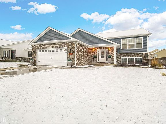 Tastefully upgraded 5 bed 3 bath home in the heart of Lowell! Located in Beverly Estates, this gem is only six years young & has been meticulously maintained & updated- the only thing to do is move in. Stone & vinyl exterior, new front door (2024) & back yard features a deck, & a covered concrete patio! You will love the premium finishes, updated foyer with built in bench & custom trim. Living room features vaulted ceilings & is open to the custom chef's kitchen with large island provides seating for four, premium cabinets, quartz counters, & tile backsplash, & kitchen appliances stay! Main floor features 3 beds including the main bedroom with a walk -in closet, & its own bathroom! 2 additional bedrooms share a 2nd bath. Lower level is open concept with 9' ceilings & the possibilities for this area are endless, vinyl plank flooring & shiplap help make the room cozy! 2 more beds, a bath, laundry, & storage complete this level. 2 car garage & HE furnace, schedule your showing today!