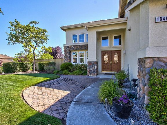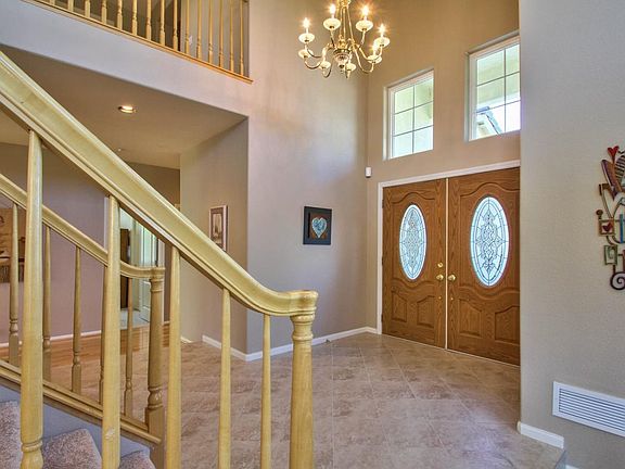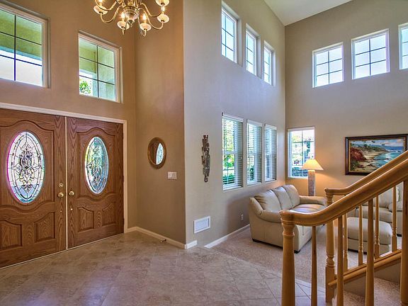Wonderful family home on one of the nicest locations in Las Palmas 2. Easy, convenient and behind the gate you will find one of the sweetest little cul-de-sacs, Deertrack Place! This large 5 bedroom home awaits your arrival on a spacious corner lot with 3 car garage. Upgraded porcelain tile entryway leads you through the main level which is in like new condition. Newer dual pane windows add ample lighting. There is a full bedroom and bath downstairs convenient for a guest bedroom or and office. Updated open kitchen with custom tile countertops and Island complete with tumbled marble backsplash and stainless steel appliances. Open concept to family room with fireplace. Master Suite with warm 3-way fireplace, jetted tub and newer shower enclosure. The nicely landscaped backyard has a sitting area of Travertine tile and custom pavers great for barbecues or entertaining. There is a nice trellis with a relaxing hot tub and plenty of grass for animals and fun!