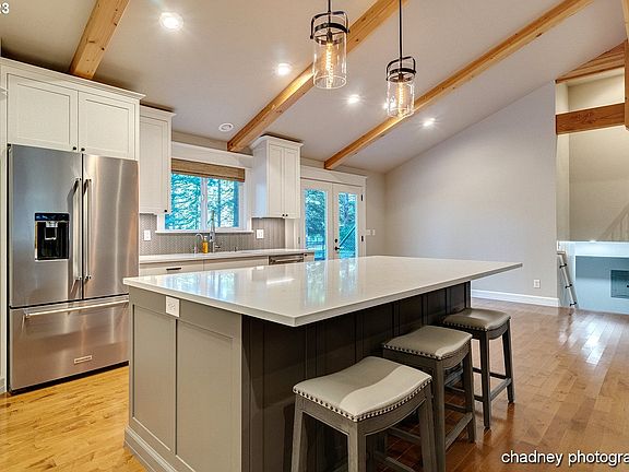 - Features: Island, Quartz, Vaulted Ceiling, Wood Floors