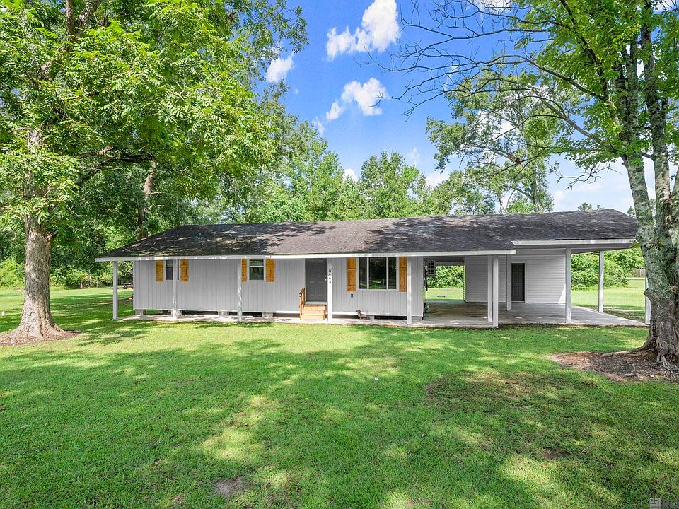 Renovated Cottage located on a beautiful one acre lot. Three bedroom one bath home has recently been remodeled to give it a more modern rustic touch. On the exterior you will notice new vinyl siding and all new windows in the home and storage room. The kitchen features new cabinets, butcher block counter tops with a brick paver backsplash, farm house sink, and new stove. This home offers a double carport with attached covered porches on the front and rear of the home. There is no carpet and this home is not located in a flood zone. Updates also include all new electrical wiring and newly blown insulation in the attic. This home is a must see for a peaceful rural lifestyle.