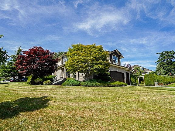 Hunter Park Estates. Lge Majestic 3 story home situated high on the top of a quiet road overlooking the valley offers unlimited features. The huge extremely private yard w/two lge stamped concrete patios give the feeling of being in an exclusive resort w/2 apple pear & crab apple trees. Inside the lge foyer w/high ceilings gives on an elegant Living rm. as well as a lge formal dining w/newer flooring thru out the main floor. The Lge newer kitchen with tons of cabinets and quartz counter tops,60K thermador appliances including steam oven, overlook the morning room & the private yard. The top floor has a Master Suite, w/walk-in closet & 5 piece ensuite, plus 3 beds w/newer carpet thru out. Basement could also have a 2 bed rm. suite. Lots of extras too many to mention. Come view today.