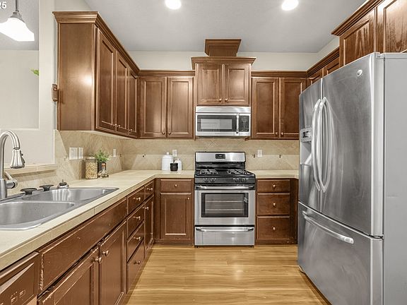 Beautifully Maintained, Move-In Ready Townhome in Cornerstone Townhomes! This stunning 3 bed, 2.5 bath home offers an open-concept main level with rich laminate flooring throughout. The bright and inviting living room features a cozy gas fireplace, seamlessly flowing into the modern kitchen with stainless steel appliances, elegant cabinetry, and a convenient eat-in bar. A dedicated dining area has sliding doors to a covered patio making it perfect for relaxing or entertaining. Upstairs, the spacious primary suite has vaulted ceilings, a private bath with double sinks and a large walk-in shower, and a generous walk-in closet. Two additional bedrooms, a full bath with tub/shower, and a laundry area complete the upper level. Located just minutes from dining, Canemah Bluff Nature Park with hiking trails along the Willamette River, and the Oregon City Golf Course. Don’t miss this incredible opportunity in a well-kept community!