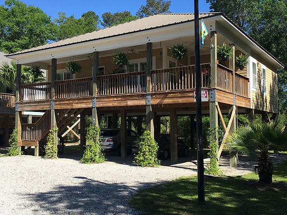 RAISED RIVER COTTAGE W/METAL ROOF & AN OPEN FLOOR PLAN. EXCEPTIONAL 2 BED 2 BATH, TURN-KEY READY! FULL TIME RESIDENCE or SECOND HOME or WEEKEND GET-AWAY! FISH ALL DAY THEN RELAX ON 400+ SQ. FT. OF COVERED PORCHES OR GO FOR A DIP IN THE COMMUNITY'S POOL. PARK YOUR BOAT UNDERNEATH OR ENJOY YOUR ASSIGNED BOAT SLIP. BUILT IN 2007.