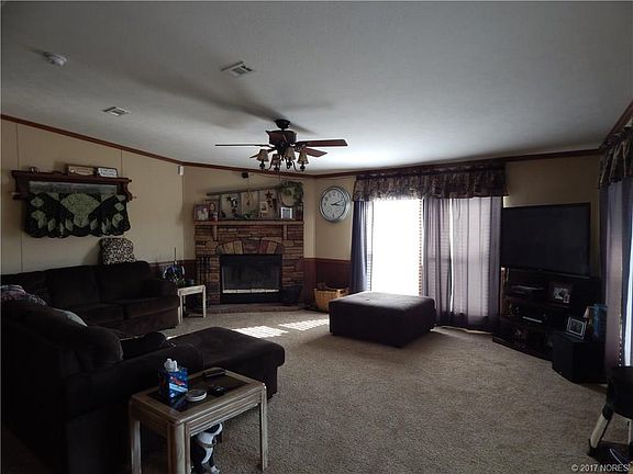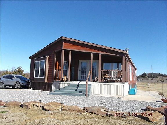 Beautiful, immaculate home with an open living/dining/kitchen area. Wood burning fireplace for those cold winter days. Living room has lots of windows looking out onto the 5 acres. Enjoying the deer and turkey wondering across the property from the comfort of your couch! Current owners have seen many deer and up to 50 turkeys at one time. The kitchen has amazing cabinets and a full pantry. Nice rock archway above the stove and rock accents in other locations. The kitchen island has the sink w/top notch faucet and dishwasher. The wide hallway to the bedrooms/baths has a built in desk area. The second hallway to the backdoor offers plenty of space for not only a washer and dryer but also a freezer. There are two decent size bedrooms and a full bath. Then you have the large master suite with double doors into the adjoining bathroom. This bathroom offers its on water closet, 2 separate sink/vanity areas, large garden tub and separate large shower with a full body shower head. Off the bathroom is a nice walk-in closet. The home is a 2015 Legacy doublewide with smart siding, metal & vinyl skirting, 200 amp breaker box, 30 yr roof, double pane vinyl windows with tilt in for easy cleaning. Home sits on a complete concrete pad and the wheels and axels have been removed. The house is on an aerobic system. The well house is top notch for the water well and complete water filtration system. Water well is tested on a regular basis and supplies ample water. This property also has a 30' x70' shop which has its own 200 amp breaker box, 2 overhead doors and one regular door. The metal siding shop is also double insulated with OSB walls for your comfort in doing whatever projects you so desire to do. Shop has concrete floors, electricity, plenty of shop lights, pull down staircase with partial overhead storage and a water hydrant conveniently located just outside the regular door. The 5 flat, open acres does have a few trees and a creek on the western side of the property. Land was sprigged with Bermuda grass in the Summer of 2015. Partial fencing on the South and East Sides. There are 2 driveways into the property or if you remove the decorative big rocks the current owners have then you could have a circle driveway. Property sits just off Clearlake Rd. The front of the house actually faces away from the road to give you a gorgeous view of the property and not the road. This property is conveniently located. Only 25 minutes from McAlester, OK and just minutes away from the on ramp to the Indian Nation Turnpike going North to Tulsa or Oklahoma City.