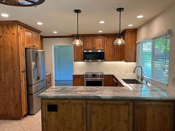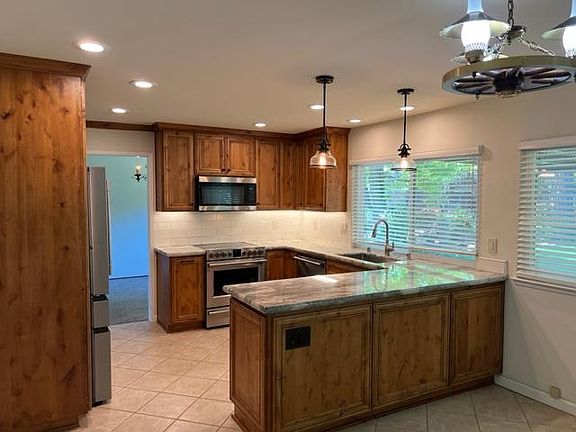 Pleasanton Valley!! Beautiful Birdland home with park like yard! Lower level features formal living room, formal dining room, family room with wood burning fireplace, laundry room with washer and dryer provided, remodeled kitchen with custom cabinets, granite counters, stainless steel Frigidaire Professional Series appliances (Including refrigerator). Upstairs you will find three bedrooms, newly remodeled full hall bath & primary suite with newly remodeled bathroom featuring double sinks. Magnificent yard with featuring salt water pool, lawn area for play, large deck area for entertaining, sunny garden area to grow your favorite produce or fresh cut flowers all professionally maintained by a weekly landscape service and pool service. Brand new central air and heating system! Pets are considered with additional terms. Walk to all grades of Pleasanton's great schools, Pleasanton's Sports Park, Shopping & Dining! Shown by appointment. Owner pays for landscape and pool service. Tenant pays for all utilities. Washer, dryer and refrigerator are provided on an as-is basis. One year lease minimum. Pets considered with additional terms.