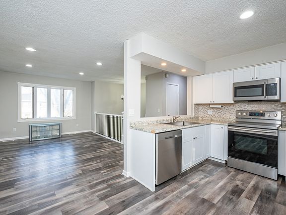 4 bedroom 2 bath split level home with over 1,500 sqft of finished living space! Open concept living room/kitchen area with updated cabinets, tile backsplash, and stainless steel appliances. The lower level features a spacious living room with a fireplace, 4th bedroom and a 1/2 bath. There is a sunroom off the kitchen that leads to the deck! Detached garage and fenced in backyard.