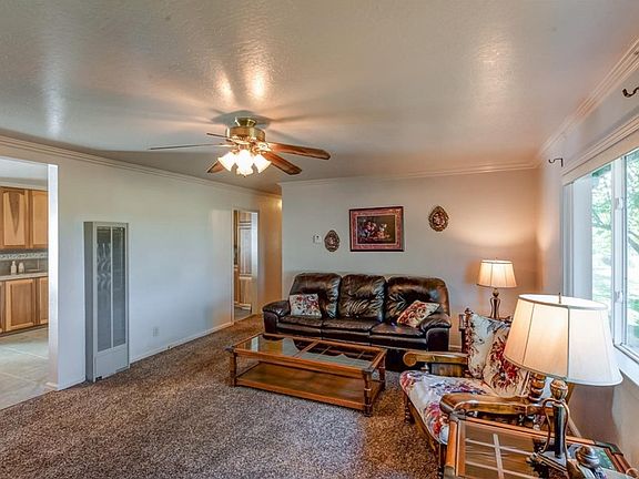 A home with a HUGE garage, shop, RV hookup, and an amazing backyard! Many upgrades and features: brand new 30 year roof, updated electric throughout, freshly touched up interior and exterior paint, dual pane windows, 6-panel doors, hardwood floors under the carpet, crown molding throughout, ceiling fans in many rooms, remodeled kitchen and bathrooms, stunning kitchen features an abundance of custom Poplar cabinetry, custom tile and crown molding, dining nook and slider to stunning backyard. Cozy living room and step down family room (which could easily be used as a HUGE master bedroom with full bathroom), but currently used as a large, family room with wood burning fireplace and second bathroom. All three bedrooms feature dual pane windows, carpet with hardwood floors underneath, crown molding, and ceiling fans. House has 220 amp. 1,000 sf shop has 100 amp, plus it is wired for 220 and plumbed for a bathroom.