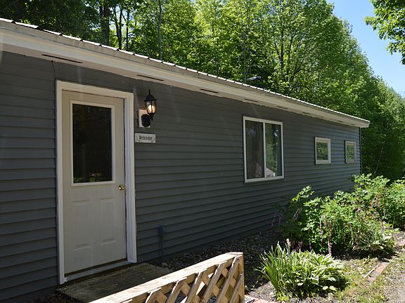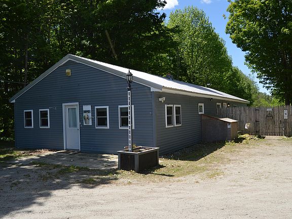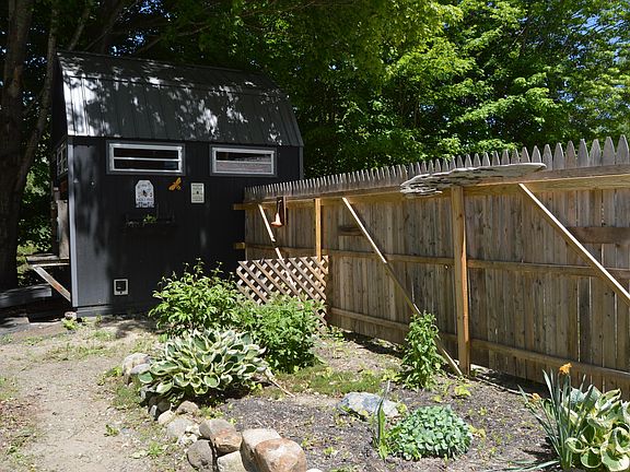 Single floor living. 2-to-3-bedroom ranch. Open concept with living room, kitchen, and dining area. Full bath with laundry area. Nicely landscaped with rock accents, brick patio, and private fenced in area. Large shed for storage. From the dining area use patio door to patio that overlooks the backyard. A portion of home was previously used as an ice cream shop and with town approval maybe used as in home business, or easily turn that area into primary bedroom suite with half bath and walk in closet. 2 heating zones.