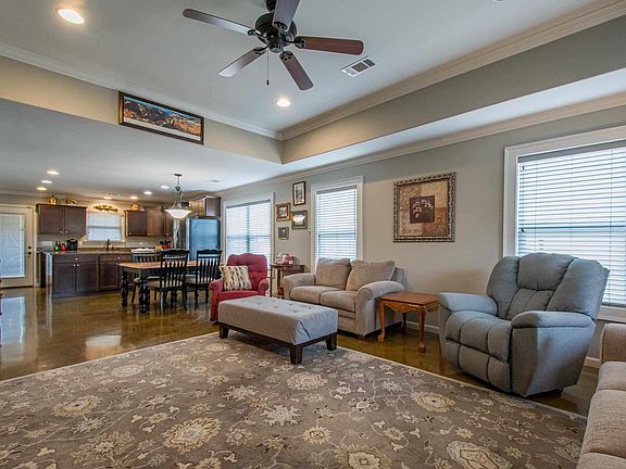 Great 3 bedroom 2 bath home on corner lot in quiet subdivision. Open concept plan. Primary bedroom apart. Bath has walk-in shower. Large closet. Kitchen has large island and is open to living and dining. Mud room and laundry by garage entry. 2 car garage with storm shelter. Stairs in garage to storage above garage. Extra parking pad with covered parking. 10x14 storage at back of garage. No maintenance yard. Covered deck in rear. Fabulous move in ready house.