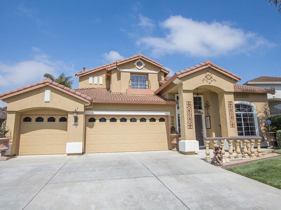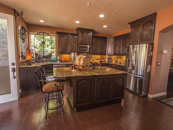 Gorgeous 4-bedroom 3-bath home in a desirable neighborhood! Welcoming entrance to the home. 3-car attached garage. This home features vaulted ceilings and an amazing floor plan! Spacious living room with crown molding and plenty of windows for natural light. Family room has a lovely fireplace for you to enjoy with loved ones. Stainless steel appliances in the open kitchen. Granite counter tops, breakfast bar and and island! Full bath and bedroom on the first floor for your convenience. Spacious, carpeted bedrooms with ample closet space. Master bedroom with vaulted ceiling, ample closet space and master bath beautiful designed with dual sinks, separate shower stall and sunken tub! Wonderful backyard perfect for entertaining with an outdoor fireplace, beautiful porch, fountain and storage.
