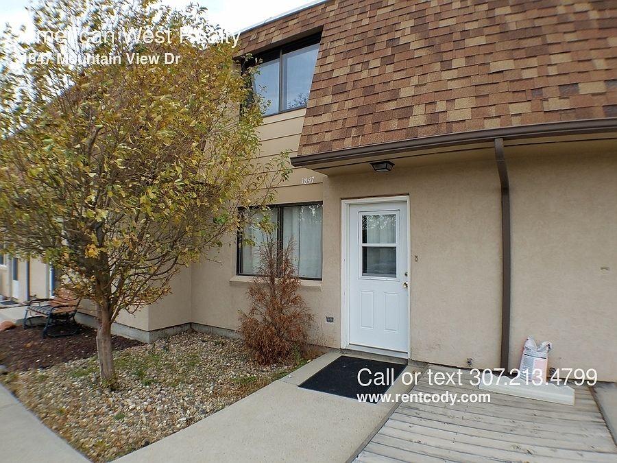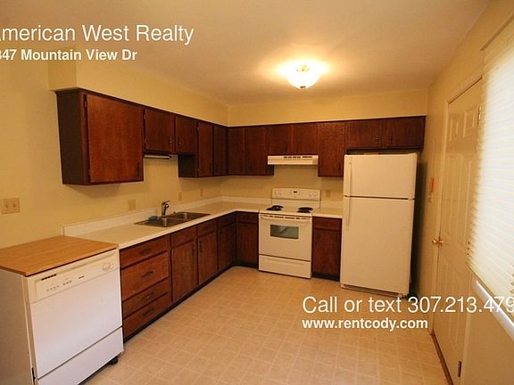SCHEDULE A SHOWING ONLINE AT: showmojo.com/lh/23046a9060 This townhome is located in Carter Mountain Village. Main floor includes the living room, kitchen with dining area, laundry (washer and dryer included), and a half bath. Three bedrooms and a full bath are located upstairs. There is a small fenced yard in back (paved, no grass) and two storage closets. The front has parking for two vehicles. Across the parking lot is a community park with swing set. No pets or smokers. Contact American West Realty for more information or to apply. Assigned Outdoor Parking Cable Ready Ceiling Fan Fenced Yard Heat Baseboard Hot Water Kitchen Dishwasher Kitchen Refrigerator Kitchen Stove / Oven Storage Shed Utility Black Hills Energy Utility City Of Cody (Water, Electric, Sewer, Trash) Washer/Dryer In Unit