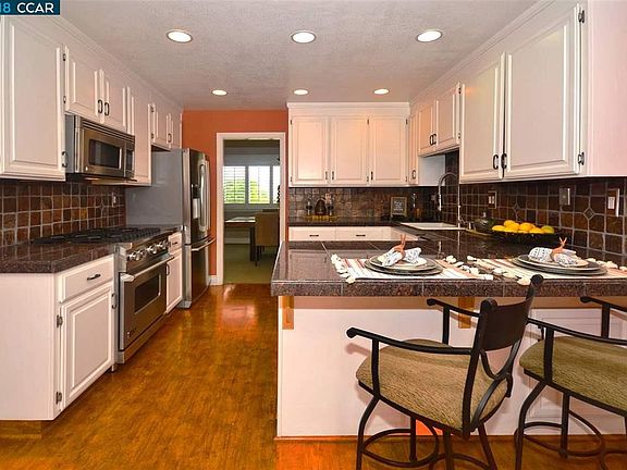 Amazing Views from this beautifully appointed home in the popular Danville Ranch neighborhood. Kitchen features Viking appliances, granite counters with designer tiled backsplash, breakfast bar and family room/den that opens to atrium deck area complete with fire pit. Formal living/dining room features soaring ceilings, fireplace, recessed lighting, and deck to the outside with views of Mt. Diablo and the San Ramon Valley. 3 spacious bedrooms downstairs that includes a master suite and access to the outdoor patio area. Patio area includes built-in seating, tiled pavers, and privacy. Situated on Danvilles Westside, this home is close to highly rated schools, downtown shopping and restaurants, local business parks, and easy freeway access. Low quarterly HOA fees include a pool, club house, tennis courts, and playground. Open spaces throughout the neighborhood create a sense of privacy and serenity. Open Sun 1 to 4 pm