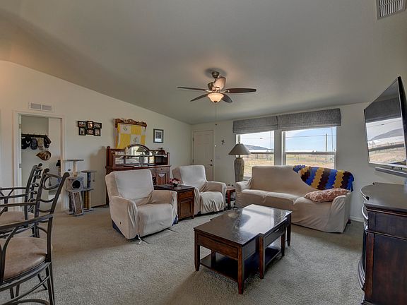 Looking for the perfect country living home that's ready to go and affordable? Check out this newer Cavco manufactured home on almost 2 acres with panoramic views and a HUGE 12 x 32 shed. Why buy brand new when you can get a 2018 build with a paved driveway right up to your home! This split bedroom floor plan offers a great room with vaulted ceiling, 3 bedrooms/2 baths, a huge walk in pantry and a separate laundry room. Built with 2 x 6 exterior walls and upgraded insulation package you'll be perfectly cozy! Shared well tested 24gpm in 2017. Plenty of room for your RV, horses, chickens, etc . Remember no HOA here! Check this home out today!