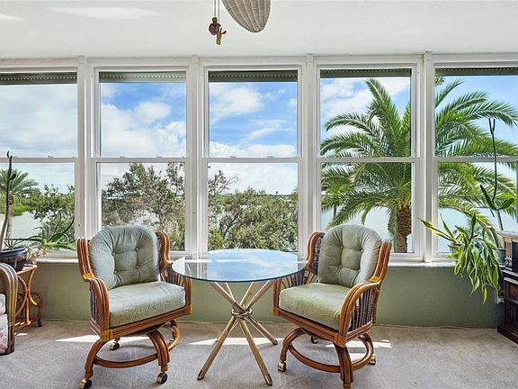 Water views from virtually EVERY room! Welcome to your furnished escape in Shorecrest. This beautifully maintained 2 bedroom, 2 bath condo on the 5th floor offers stunning water views from both the front and back of the unit. Located in a vibrant 55+ waterfront community, this home blends comfort, convenience, and lifestyle. The bright, open floor plan allows the living and dining areas to flow into the Florida room. A perfect space to enjoy your morning coffee or evening cocktail while taking in the peaceful waterfront setting. Includes a queen sized sofa bed. The Florida room features hurricane shutters for comfort and privacy at the touch of a button, and the windows were completely refurbished in 2025. These newer tilt windows make for easy cleaning. The kitchen is thoughtfully positioned so you can enjoy the water view while cooking or cleaning, and features hurricane-rated front windows replaced in 2020. This is a mostly FURNISHED unit, complete with original artwork and every kitchen accessory you could need! The primary suite includes brand-new carpet (2025) and an en suite bathroom with a low-entry shower. The second bedroom also features carpet and a water view. Additional highlights include motorized hurricane shutters, all milestone inspections completed and funded in 2023, a fully funded roof replacement completed in 2025, and two laundry rooms in the building!! One on the first floor and one conveniently located on the fifth floor! Shorecrest offers a fishing pier (new in 2023), kayak launch, heated pools, library, fitness center, clubhouse, and a variety of clubs and activities. You’ll also enjoy being walking distance to the marina, and just minutes from shopping, dining, a winery, bowling, and the St. Pete Beach Sunday Market. With the Sunrunner bus nearby, you can leave the car behind and enjoy easy access to downtown St. Pete or St. Pete Beach. Book your showing today!!
